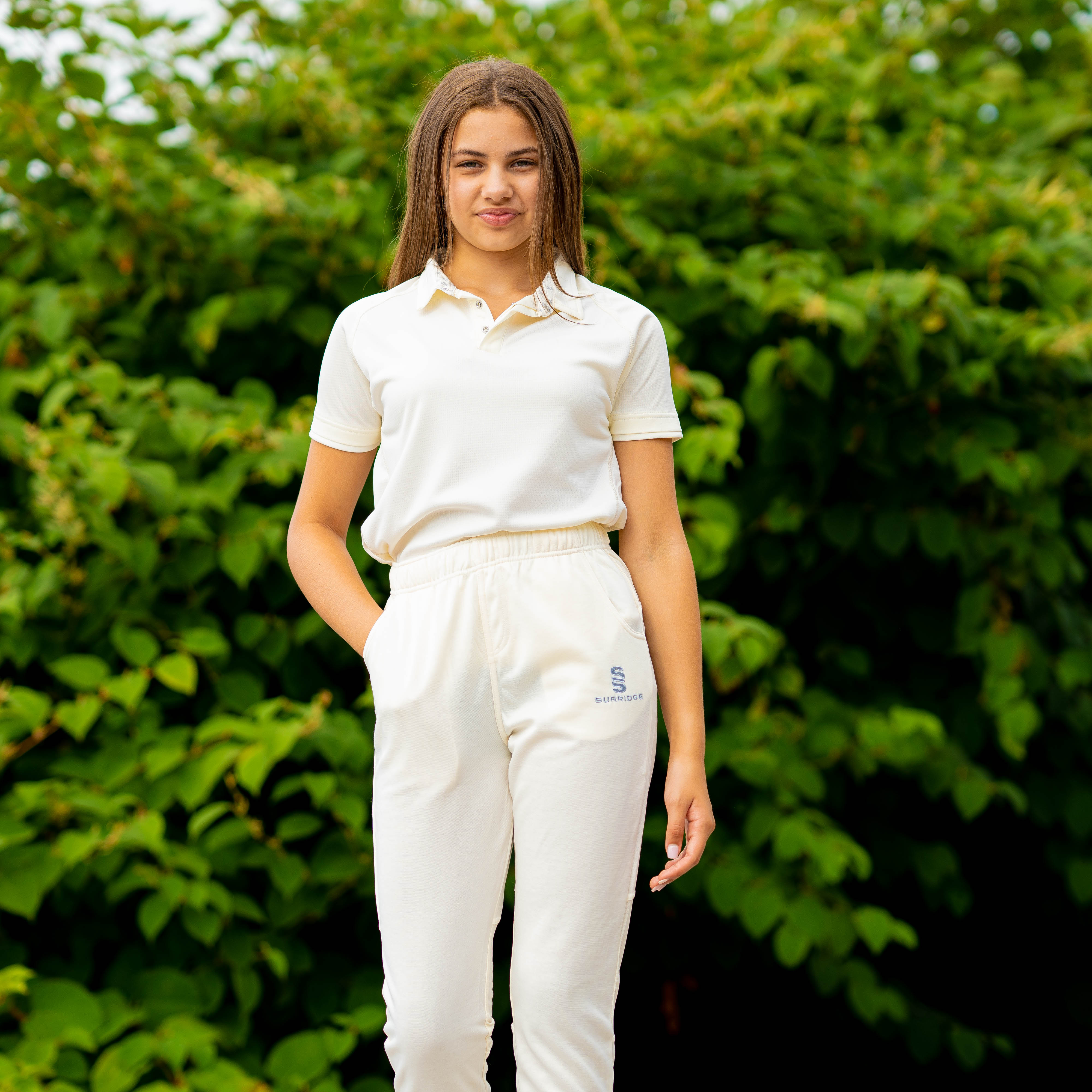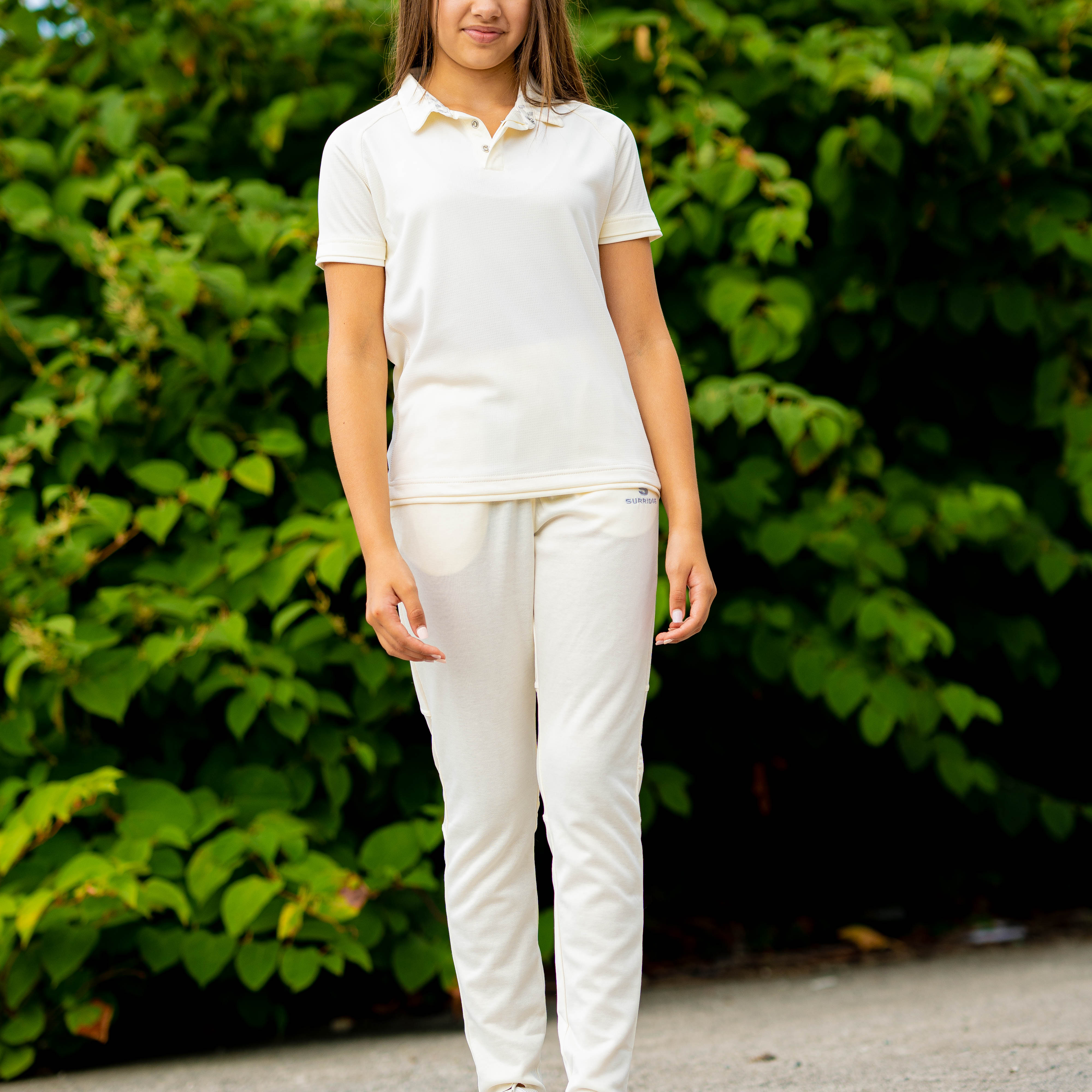 Tek Playing Pant, embroidered ss left leg in silver.  Made from a slightly fleecey internal material, with tapered legs from the knee downwards.  Comes in an unfinished leg with 2 pockets.  Elasticated waistband with draw cord.  Specifically designed for he modern women cricketer.